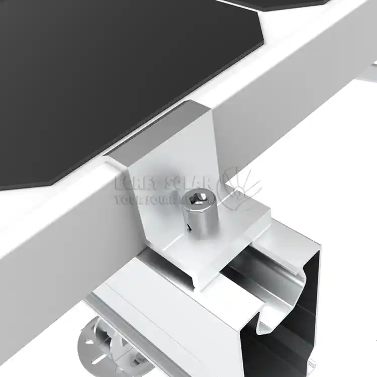 گیره انتهایی خورشیدیچارچوب بیرونی ترین جزء هر ردیف را به انتهای ریل ثابت می کند تا از لیز خوردن آن جلوگیری کند. در عین حال، فشار دادن لبههای اجزا به کاهش هجوم باد، باران و گرد و غبار از طرفین کمک میکند. در لبه آرایه قرار دارد و مستقیماً قویترین نیروی بالابر باد (نیروی کشش به سمت بالا) و نیروی مکش باد را تحمل میکند، این یک نقطه کلیدی برای تحمل نیرو در طراحی مقاوم در برابر باد است.